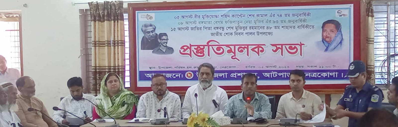 ৫ আগস্ট বীর মুক্তিযোদ্ধা শহিদ ক্যাপ্টেন শেখ কামাল এর ৭৪তম জন্মবার্ষিকী, ৮ আগস্ট বঙ্গমাতা বেগম ফজিলাতুন নেছা মুজিব এর ৯৩তম জন্মবার্ষিকী, ১৫ আগস্ট জাতির পিতা বঙ্গবন্ধু শেখ মুজিবুর রহমানের ৪৮তম শাহাদত বার্ষিকীতে জাতীয় শোক দিবস পালন উপলক্ষে আটপাড়া উপজেলা প্রশাসন আয়োজনে উপজেলা পরিষদের হলরুমে উপজেলা নির্বাহী কর্মকর্তা মো. শাকিল আহমেদের সভাপতিত্বে প্রস্তুতিমূলক সভা অনুষ্ঠিত হয়৷