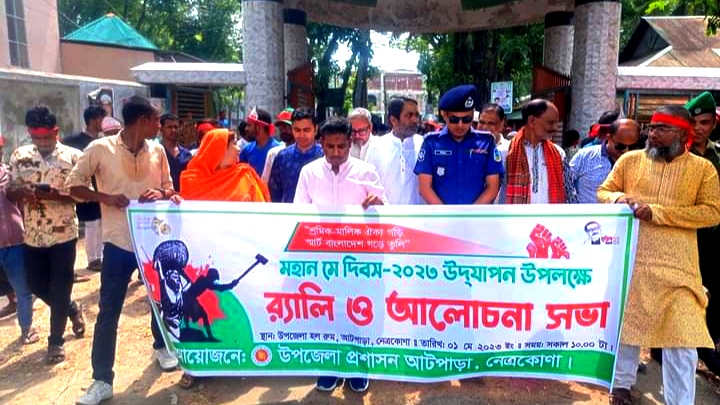 আটপাড়া (নেত্রকোনা) প্রতিনিধি :: শ্রমিক-মালিক ঐক্য করি, স্মার্ট বাংলাদেশ গড়ে তুলি’ প্রতিপাদ্যে নেত্রকোনার আটপাড়ায় মহান মে দিবস পালিত হয়েছে। দিবসটি উপলক্ষে সোমবার সকালে উপজেলা প্রশাসন ও জাতীয় শ্রমিক লীগ আটপাড়া উপজেলা শাখার যৌথ আয়োজনে উপজেলা চত্বর থেকে একটি বর্ণাঢ্য র্যালি বের হয়।