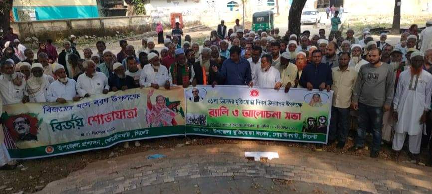 সিলেটের গোয়াইনঘাট উপজেলা মুক্তিযোদ্ধা সংসদের উদ্দোগে মুক্তিযোদ্ধা দিবস উপলক্ষে শোভাযাত্রা ও আলোচনা সভা অনুষ্ঠিত হয়েছে।