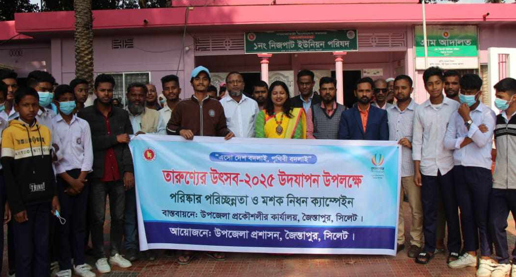 ১৩ই জানুয়ারী সোমবার সকাল ১১ টায় নিজপাট ইউনিয়ন পরিষদ চত্বরে তারুণ্যের উৎসবের ১ম দিনের কর্মসূচির উদ্বোধন করেন জৈন্তাপুর উপজেলা নির্বাহী কর্মকর্তা (ইউএনও) উম্মে সালিক রুমাইয়া।