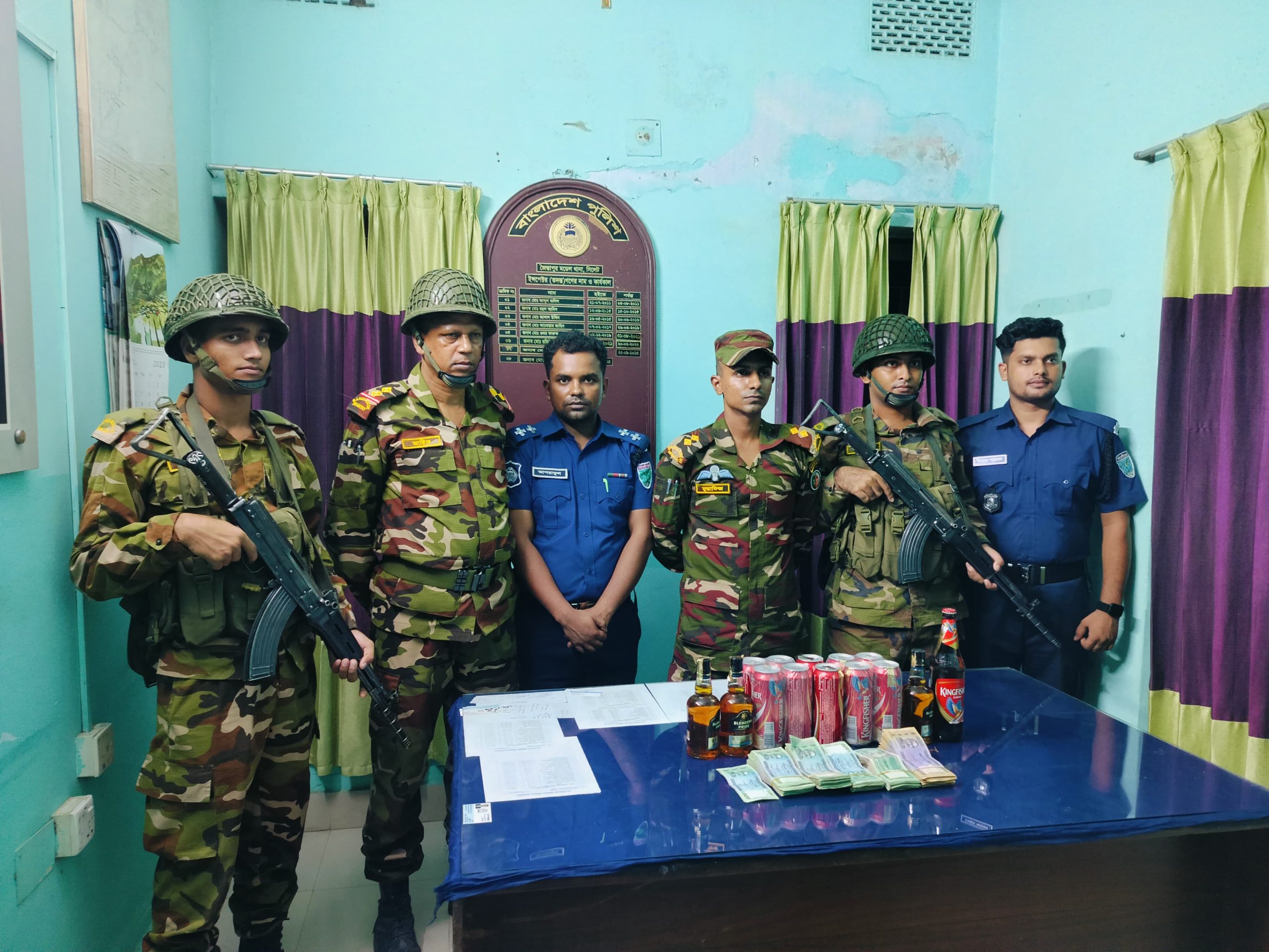 সিলেটের জৈন্তাপুরে যৌথ বাহিনীর অভিযানে ১৭ বোতল ভারতীয় মদ সহ নগদ ৩ লক্ষ ১৭ হাজার টাকা উদ্ধার।