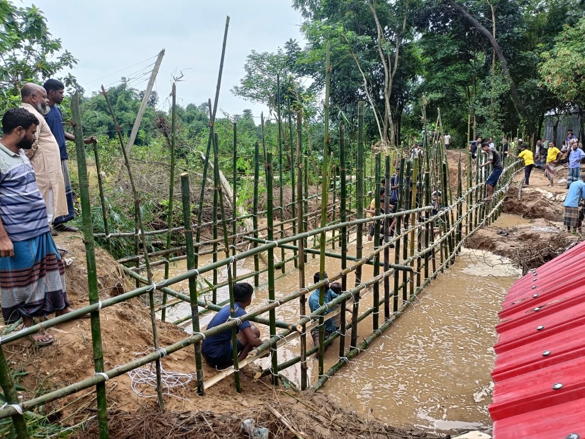 সরজমিনে ভেঙে যাওয়া এলাকায় গিয়ে দেখা যায় গ্রামের যুবকের বাঁশ কেটে বাঁধ নির্মাণ করে রাস্তাটি চলাচলের জন্য উপযোগী করে তুলছে। এ সময় সংস্কার কাজের স্থান পরিদর্শন করেন সাবেক ও বর্তমান জনপ্রতিনিধিরা।