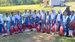 জৈন্তাপুর উপজেলায় বন্যায় ক্ষতিগ্রস্ত স্কুলের ছাত্র-ছাত্রীদের মাঝে শিক্ষা উপকরণ বিতরণ