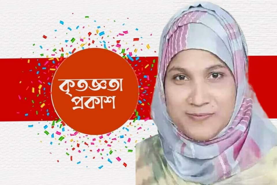তামান্না আক্তার হেনা’র কৃতজ্ঞতা প্রকাশ
