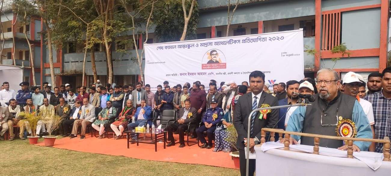 প্রায় দেড় হাজার ছাত্র-ছাত্রীর অংশগ্রহনে সিলেটের গোয়াইনঘাট উপজেলায় অনুষ্ঠিত হয়েছে ‘শেখ কামাল আন্ত:স্কুল ও মাদ্রাসা অ্যাথলেটিকস প্রতিযোগিতা-২০২৩’। মন্ত্রী বলেন, দেশব্যাপী বঙ্গবন্ধু শেখ মুজিবুর রহমানের জ্যেষ্ঠ পুত্র, দেশে আধুনিক ক্রীড়ার রূপকার শহীদ শেখ কামালের নামানুসারে ‘শেখ কামাল আন্ত:স্কুল ও মাদ্রাসা অ্যাথলেটিকস প্রতিযোগিতার আয়োজন করা হয়েছে।