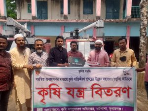 সুনামগঞ্জের ধর্মপাশা উপজেলা পরিষদ প্রাঙ্গণে ভর্তুকি সহায়তার মাধ্যমে প্রাপ্ত এ উপজেলার ১০জন কৃষকের মধ্যে একটি করে কম্বাইন হারভেস্টার যন্ত্র বিতরণ করা হয়েছে।