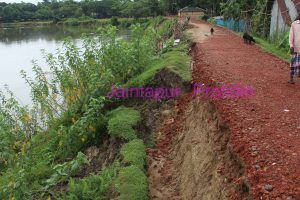 সরেজমিনে মল্লীফৌদ গ্রামের বাসিন্ধা হাজী তবারক আলী, ইউপি সদস্য ইসমাইল আলী, সমাজসেবী মাওলানা আব্দুল হান্নান, আলী আকবর সহ এলাকার শতাধীক মানুষ প্রতিবেদককে জানান, সর্বনাশী সবুড়ী নদীর ভাঙ্গনের কবলে পড়ে গত কয়েক বৎসর হতে উপজেলার জৈন্তাপুর ইউনিয়নের মল্লিফৌদ, কান্দি, কাটাখাল, চাতলাপাড়, বাওন হাওর গ্রামের কয়েক হাজার জনসাধারনের চলাচলের রাস্তাটি নদী ভাঙ্গনের কবলে পড়ে নদী গর্ভে বিলিন হচ্ছে।