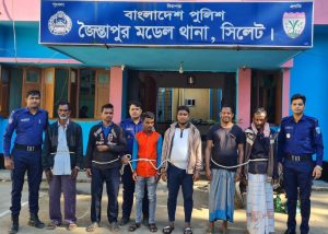 সিলেটের জৈন্তাপুরে পুলিশের অভিযানে বিভিন্ন মামলার সাজাপ্রাপ্ত ৬আসামীকে গ্রেফতার করেছে পুলিশ।