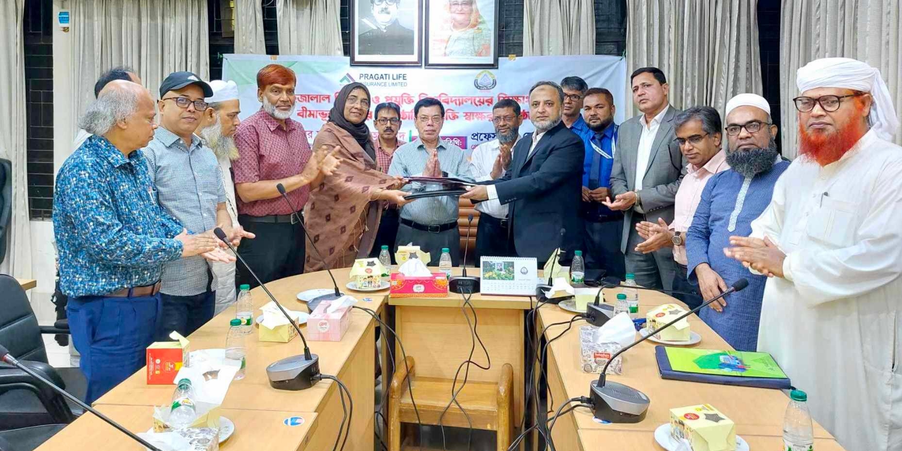 শিক্ষার্থীদের বীমার আওতায় আনতে শাহজালাল বিজ্ঞান ও প্রযুক্তি বিশ্ববিদ্যালয় (শাবিপ্রবি) এবং প্রগতি লাইফ ইন্সুরেন্স লিমিটেডের আনুষ্ঠানিক চুক্তি স্বাক্ষরিত হয়েছে।