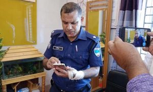 বাগেরহাট পুলিশ সুপার কে এম আরিফুল হক বলেন, ‘মোল্লাহাটে হেফাজত কর্মীরা মিছিল বের করতে চাইলে পুলিশ বাধা দিলে এসময় হেফাজত কর্মীদের ছোড়া ইট এসে ওসির হাতে লেগে আহত হন। তাকে প্রাথমিক চিকিৎসা দেওয়া হয়েছে। এখন পরিস্থিতি স্বাভাবিক রয়েছে।’