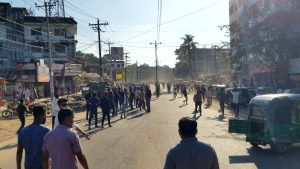 মঙ্গলবার (১৫ নভেম্বর) দুপুর ২টার দিকে পৌরশহরের দক্ষিণবাজারে এ ঘটনা ঘটে। এ সময় পৌরশহর জুড়ে আতংক ছড়িয়ে পড়ে। এ সময় নিক্ষিপ্ত ইটের আঘাতের মুসলিম মিয়া নামের এক শ্রমিক আহত হন। উপজেলা ছাত্রলীগের ধাওয়া খেয়ে শহরতলী সুপাতলা এলাকায় অবস্থান নেয় উপজেলা ও পৌর বিএনপিসহ অঙ্গ সহযোগী সংগঠনের নেতাকর্মীরা। পরে স্থানীয় নেতাকর্মীদের সাথে সেখানে যোগ দেন দলের কেন্দ্রীয় ও জেলা বিএনপি’র নেতৃবৃন্দ।
