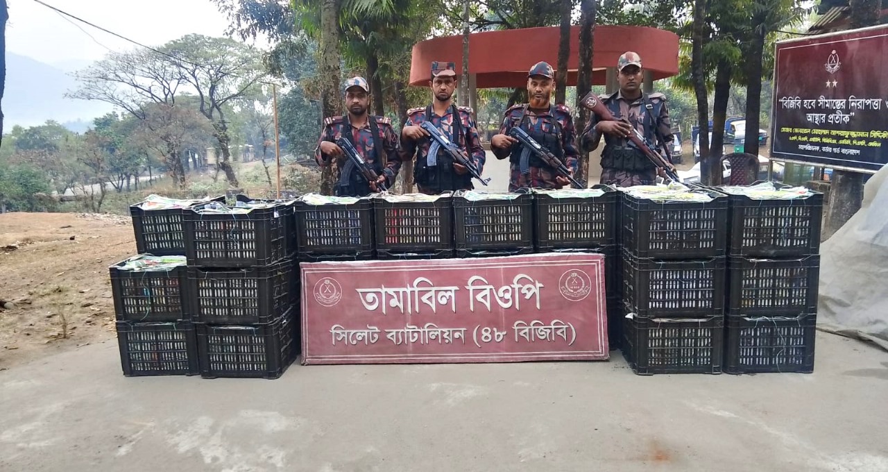বিজিবি সূত্রে জানাযায়, ১৮ ফেব্রুয়ারী গোপন সংবাদের ভিত্তিতে সিলেট ব্যাটালিয়ন (৪৮ বিজিবি) সীমান্তবর্তী এলাকা বাংলাবাজার, প্রতাপপুর, কালাসাদেক, নোয়াকোট, তামাবিল, বিছনাকান্দি পান্থুমাই, সোনারহাট বিওপি কর্তৃক অভিযান পরিচালনা করে বিপুল পরিমান ভারতীয় স্কীন সাইন ক্রিম, কফি, চিনি, কমলা, ডাবর গোলাবেরি ক্রিম, ফুচকা, গরু-২০ টি পেপার ন্যাকপিন, বেটনোভেট এন ক্রিম, ভ্যাসলিন লোশন, পটাশ ফার্টিলাইজার, শাড়ী, শুটকি, ডাবর রেড টুথপেস্ট, হাজমোলা, অডোনিল, ডাবর আমলা হেয়ার অয়েল, চকলেট, জিরা এবং মদ আটক করে। আটককৃত পন্যের বাজর মুল্য প্রায় ৪ কোটি ৮০ লক্ষ ৬৭ হাজার ১শত টাকা।