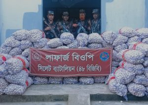 সিলেট সীমান্তে ৪৮ বিজিবি’র অভিযানে ৭৫ লক্ষ টাকার চোরাই পণ্য আটক