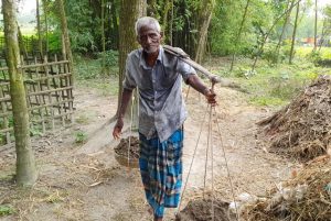 ভরদুপুরের প্রখর রোদে মো. মজিবর রহমানের শরীর বেয়ে ঘাম ঝরছে। কাঁধে মাটির ঝুড়ি। তাই জিরিয়ে নেওয়ার ফুসরত নেই। মজিবরের বয়স ৭৭ ছুঁই ছুঁই। তবে জাতীয় পরিচয়পত্রে বয়স কম হওয়ায় তিনি বয়স্ক ভাতার কার্ড পাননি। নীলফামারী জেলা সদরের ইটাখোলো ইউনিয়নের চৌধুরীপাড়া গ্রামে দেখা হয় মজিবর রহমানের সঙ্গে। বয়সের ভারে নুয়ে পড়া মজিবর তখন কাঁধে করে মাটির ঝুড়ি এনে সড়কের পাশে ফেলছিলেন।