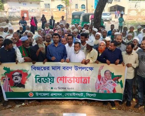 সিলেটের গোয়াইনঘাট উপজেলা মুক্তিযোদ্ধা সংসদের উদ্দোগে মুক্তিযোদ্ধা দিবস উপলক্ষে শোভাযাত্রা ও আলোচনা সভা অনুষ্ঠিত হয়েছে। বৃহস্পতিবার (১ ডিসেম্বর) সকাল ১১টায় গোয়াইনঘাট উপজেলা মুক্তি যোদ্ধা কমপ্লেক্সের সামন থেকে এক বর্ণাঢ্য শোভাযাত্রা বের হয়।…