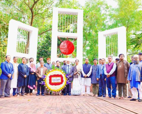 যথাযথ মর্যাদায় শাহজালাল বিজ্ঞান ও প্রযুক্তি বিশ্ববিদ্যালয়ে (শাবিপ্রবি) শহীদ বুদ্ধিজীবী দিবস পালিত হয়েছে। বুধবার (১৪ ডিসেম্বর) সকালে বুদ্ধিজীবীদের স্মরণে শহীদ মিনার ও বঙ্গবন্ধুর ম্যুরালে পুষ্পস্তবক অর্পণ করে শ্রদ্ধা জানান বিশ্ববিদ্যালয়ের উপাচার্য অধ্যাপক…