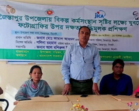 জৈন্তাপুর উপজেলায় বিকল্প কর্মসংস্থান সৃষ্টির লক্ষ্যে যুবদের ফটোগ্রাফীর উপর দক্ষতা বৃদ্ধি মূলক প্রশিক্ষণ কার্যক্রম শুরু হয়৷ সোমবার (১ নভেম্বর) দুপুর ১২টায় জৈন্তাপুর উপজেলা প্রশাসনের আয়োজনে বাংলাদেশ সরকার এবং জাপান ইন্টারন্যাশনাল কো-অপারেশন এজেন্সী…