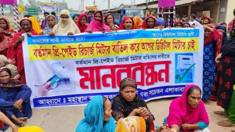বগুড়ার শিবগঞ্জে বিদ্যুতের ডিজিটাল প্রি-পেইড মিটার বাতিলের দাবিতে মানববন্ধন, বিক্ষোভ মিছিল ও বিদ্যুৎ অফিস ঘেরাও কর্মসূচি পালন করেছেন গ্রাহকেরা। কর্মসূচি শেষে মহাস্থান নর্দার্ন ইলেকট্রিসিটি সাপ্লাই কোম্পানি লিমিটেড (নেসকো) কার্যালয়ে স্মারকলিপি দেন তাঁরা।…