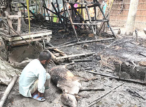 দুধেল গাভিসহ চারটি গরু পুড়ে কালামের পথে বসার জোগাড়