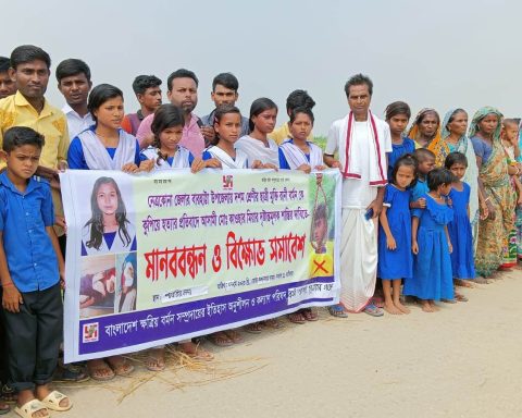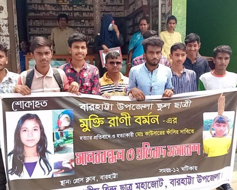 স্কুল ছাত্রী মুক্তি রানী বর্মণকে হত্যার প্রতিবাদে ধর্মপাশায় মানববন্ধন ও বিক্ষোভ সমাবেশ