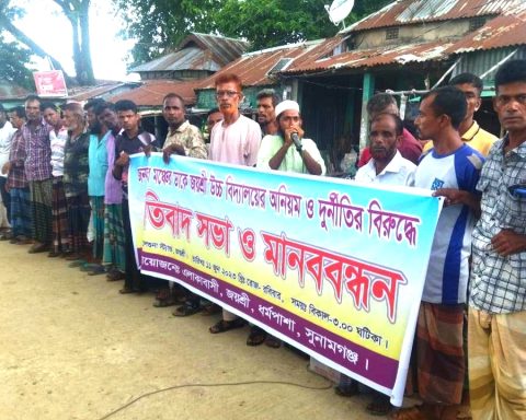 ধর্মপাশার জয়শ্রী উচ্চ বিদ্যালয়ের অনিয়ম ও দুর্নীতির বিরুদ্ধে প্রতিবাদ সমাবেশ ও মানববন্ধন