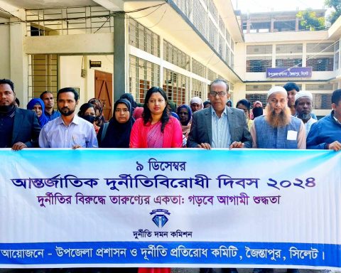 জৈন্তাপুরে আন্তর্জাতিক দুর্নীতিবিরোধী দিবস উপলক্ষে জৈন্তাপুর উপজেলা প্রশাসন ও উপজেলা দূর্নীতি প্রতিরোধ কমিটির আয়োজনে বর্ণাঢ্য র্যালী ও আলোচনা সভা অনুষ্ঠিত হয়েছে। “দূর্নীতির বিরুদ্ধে তারুণ্যের একতা : গড়বো আগামী শুদ্ধতা” এই প্রতিপাদ্যকে সামনে…