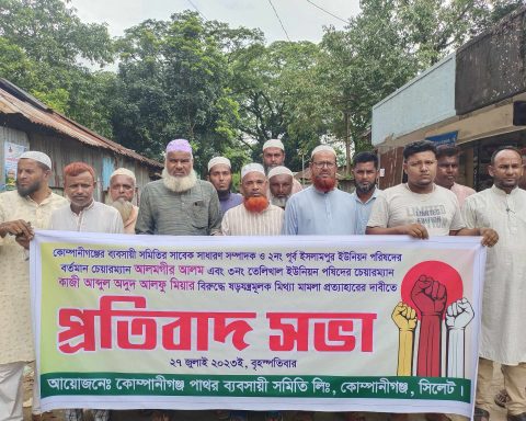সিলেটের কোম্পানীগঞ্জে পাথর ব্যবসায়ী সমিতির সাবেক সাধারণ সম্পাদক ও ২নং পূর্ব ইসলামপুর ইউনিয়ন পরিষদের চেয়ারম্যান আলমগীর আলম ও তেলিখাল ইউনিয়ন পরিষদের চেয়ারম্যান আব্দুল ওয়াদুদ আলফু মিয়ার বিরুদ্ধে ষড়যন্ত্রমূলক মিথ্যা মামলা প্রত্যাহারের দাবীতে…